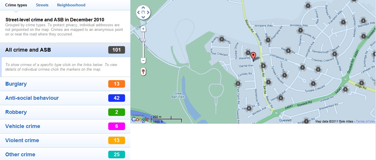 It is obvious that the priority for the police on the estate is Anti Social Behaviour and the new crime maps show this perfectly for the area that ASB is the biggest group for December 2010 (these figures include parts of Kingstanding and Oscott).
