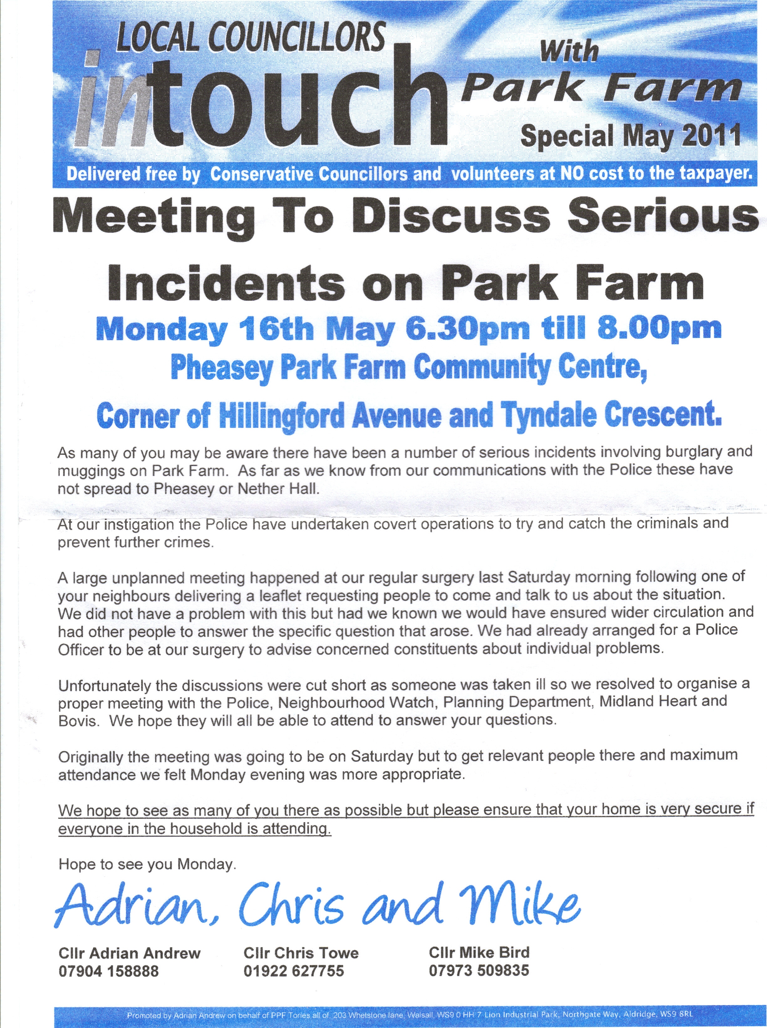 6 thoughts on “Leaflet sent to Park Farm Residents”