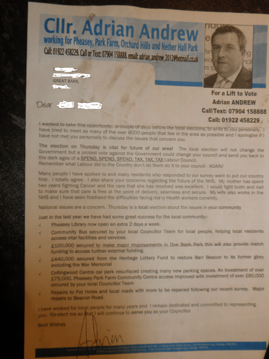 Toryletterfront Published May 2, 2012 at 2976 × 3968 in Local Election Leaflets in Pheasey Part 2 – Now to count the Votes ← Previous Next →