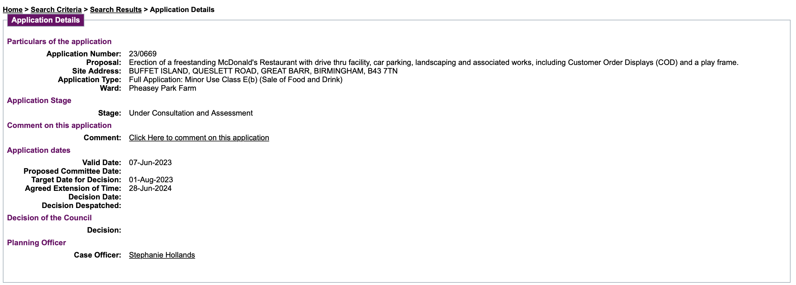 On the McDonalds app at the Trees the deadline for consultations etc has been extended to the end of June. Reading the papers recently attaching nothing in there to suggest if planners will recommend to approve or reject it.