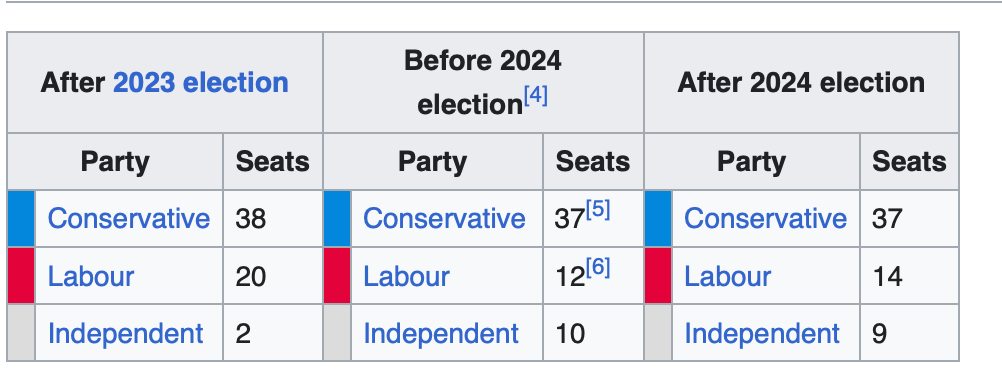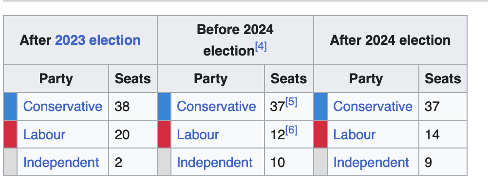 Council composition is now as below. Remembering of course a number left Labour in disagreement over Gaza.